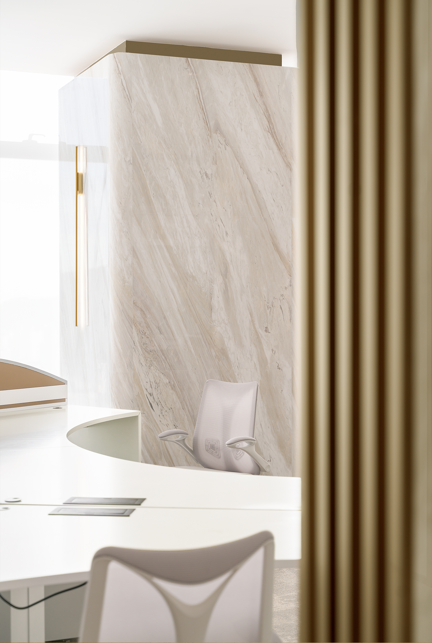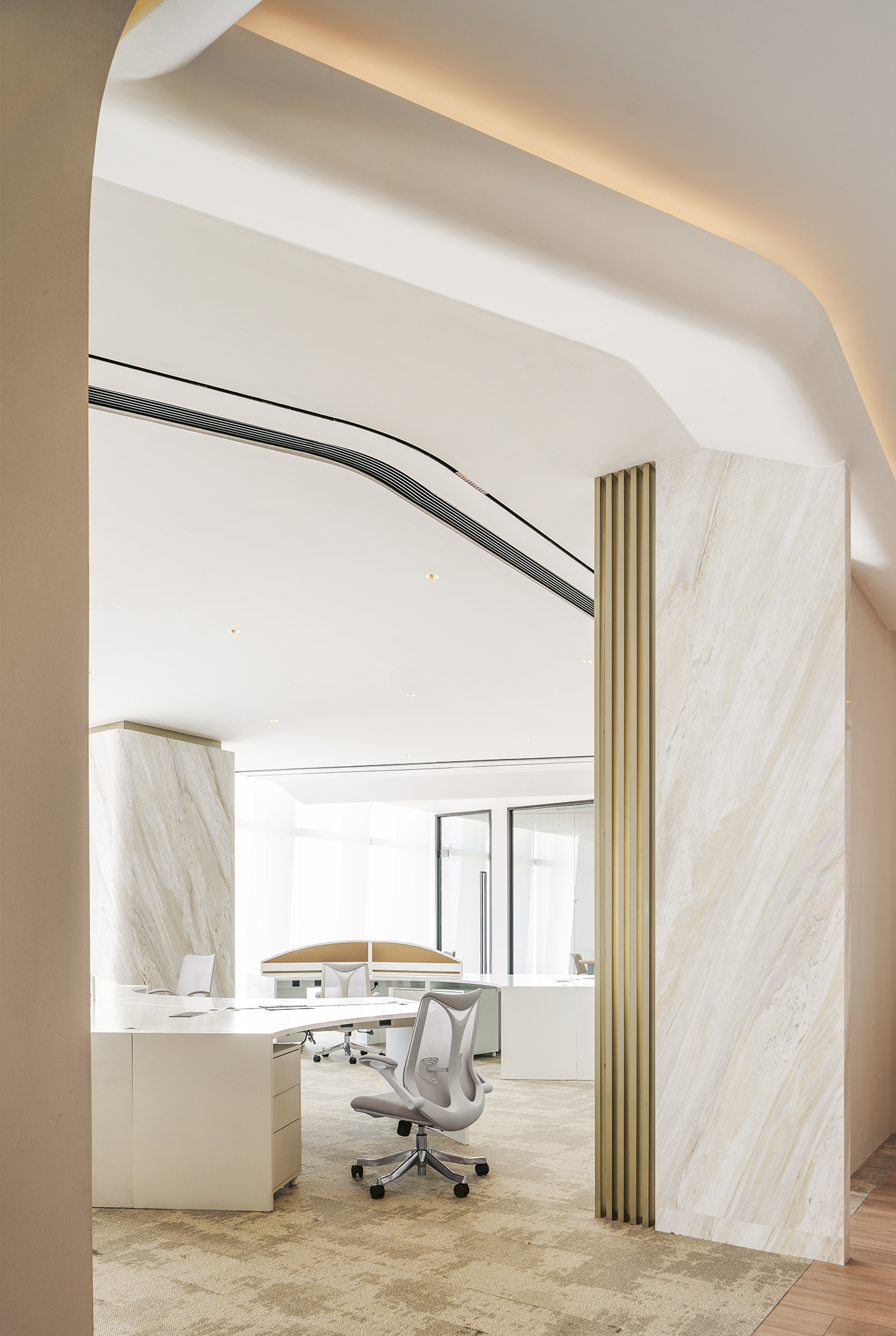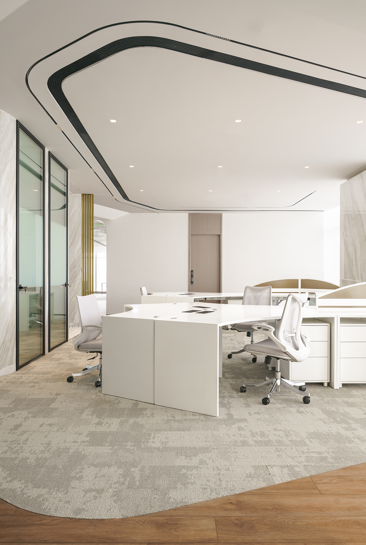 The overall design of the project adopts a blank design while meeting the basic needs of office.Reduce unnecessary decoration and utilize natural flowing lines and protrusions to turn the office into a "cave of the future."The main color of the office is white, and the wall decoration uses microcement paint.It seems simple, but it can highlight a variety of textures and colors in the changes of light and shadow, imitating the natural mottled colors in the rock wall.