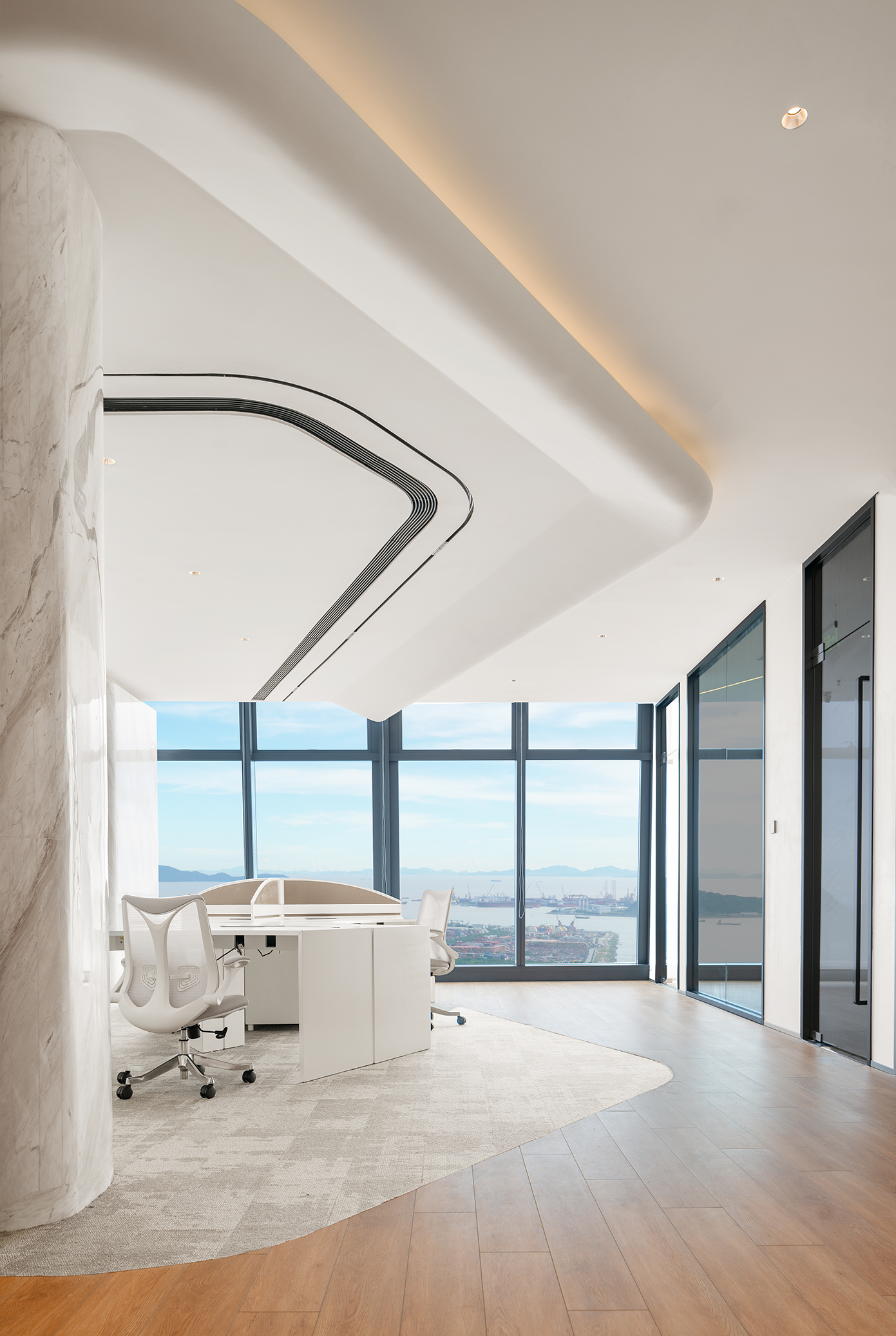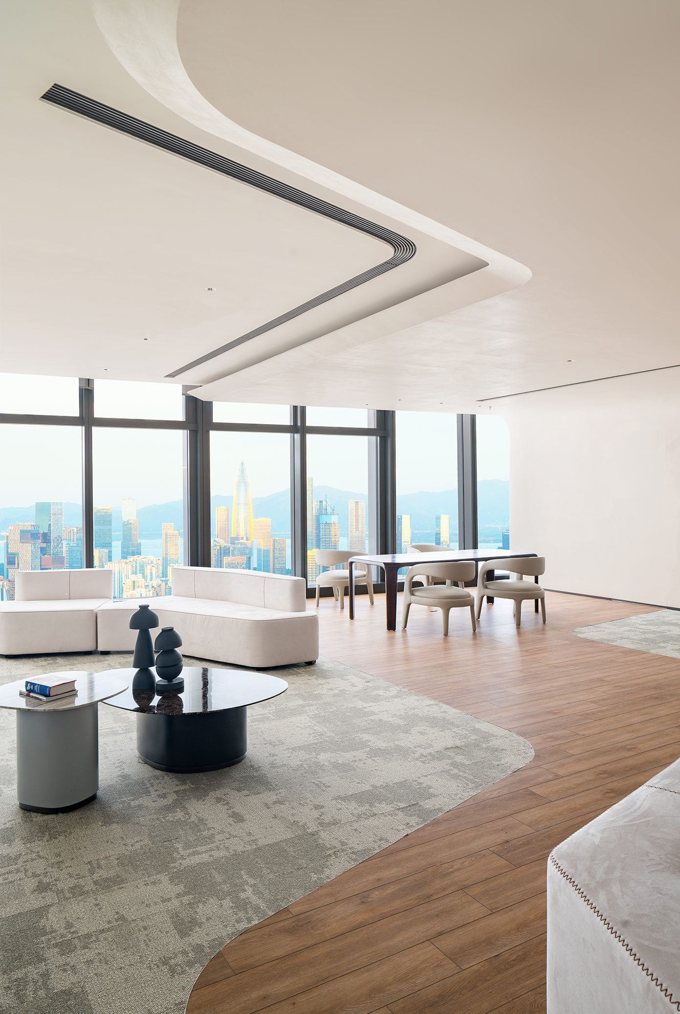 The total project area is 400 square meters.The building features floor-to-ceiling panoramic windows on both the east and south sides.In addition to the advantage of natural lighting, it also has stunning high-rise views: the eastern skyline, an unobstructed view of Shenzhen's current landscape from Nanshan to Luohu.On the other side is the southern coastline, with endless blue sky, white clouds and sea.