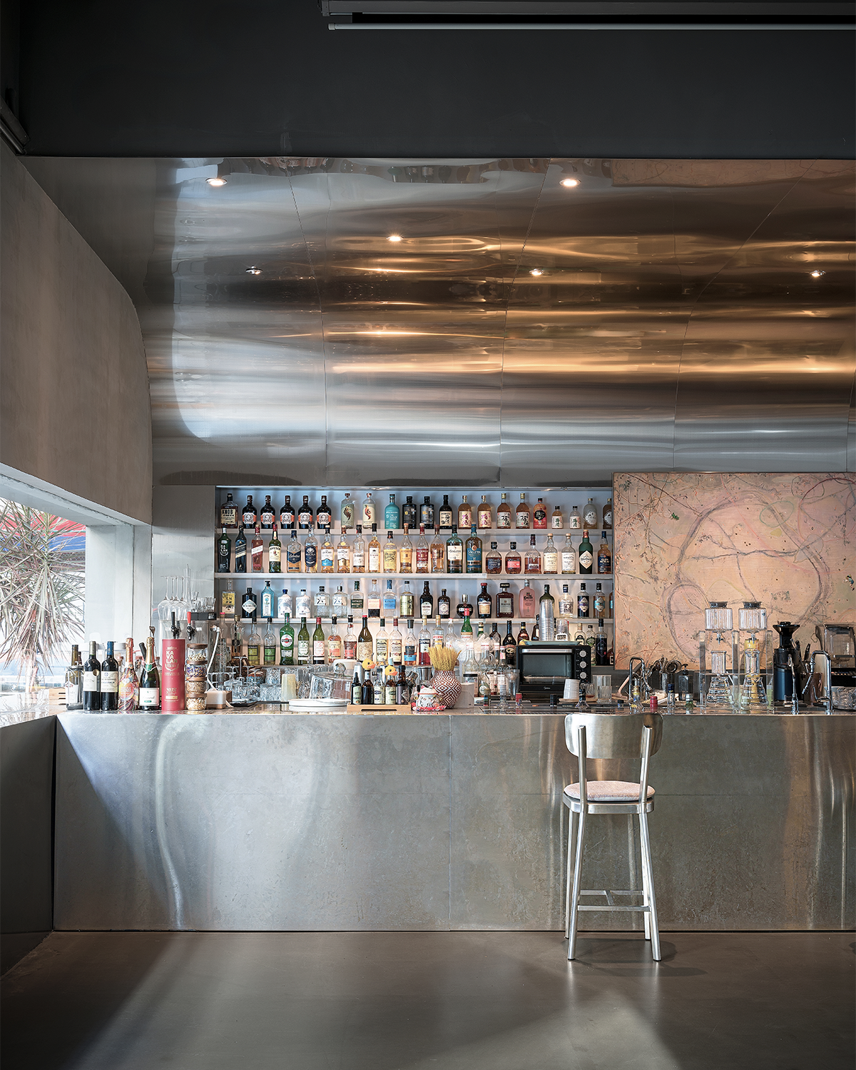 - Bar area: The metal texture design gives a clean feeling, and there is a projection screen to create spatial interaction with the cement stairs;